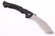 The Rajah folders, designed by Andrew Demko, are big enough to approximate the feel and heft a fixed blade Kukri. Their broad, downward curved blades exhibit the best of a Kukri’s characteristics. First, their unique shape presents their thin, hollow ground edges at just the right angle so they naturally bite deep instead of bouncing or skidding off. And secondly their points are thick, wide and sharp enough to pierce even the toughest targets.