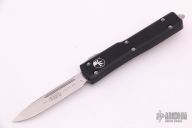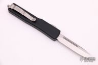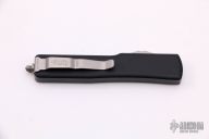 This UTX-70 OTF automatic by Microtech features a S/E satin finish blade with a standard edge. The handle has a black aluminum frame with blasted stainless steel tip down clip. Serial number 26870 and dated 09/2021. Comes with original box and papers. Excellent condition.