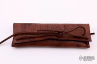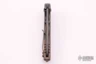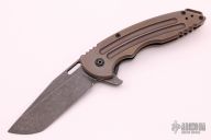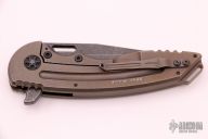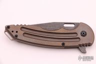 This Custom A15 Alpha frame lock flipper by Jake Hoback has an acid etched and tumble finished blade. The handle is comprised of bronzed and tumble finished titanium frame. Backspacer and pocket clip are bronzed and tumbled titanium. Flipping requires no wrist action. Strong lock up, nice detent and blade seating. This is an excellent example of Jake Hoback's work. Knife is in excellent condition and shows no signs of use/carry. Comes with leather case and COA.