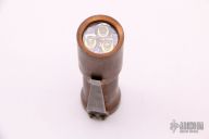 This Malihini Flashlight is a collaborative effort between Joshua Dawson and Mitch Lum. It features copper construction with dimpling and fluting. The dimpled titanium pocket clip features a tumble finish. Green rubber clicky switch on tail cap. Includes COA. Specs: Driver - H17Fx Emitter: Triple Nichia 219C 4000K. Optic: Carclo. Window: Flat Sapphire Watch Glass. Battery: Single 18650