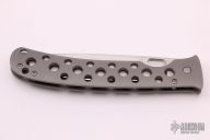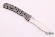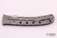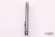 This XL TNT framelock by Tom Mayo features a hand rub satin finished recurve Talonite blade with thumbhole. The handle has a bead blasted titanium frame with hole pattern and a matching tip up clip, lanyard hole at the butt. Excellent condition. Nice detent, lockup and blade seating.