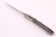 "I have been a fulltime maker since 1993 and am proud to be a voting member of the Knifemakers Guild. Most of my work is in embellished locking folders, with an occasional art fixed blade. In 1994 I began doing my own engraving and started making Damascus in 1999. I prefer natural handle materials such as mother of pearl, fossil Ivories and stone. Blade steel is my Damascus (unless otherwise noted) or one of the high quality stainless steels currently available. The embellishments I offer are engraving, gold inlay, mosaic pearl inlays, file work, carving and solid 14K gold screws and thumb studs that I make in shop."