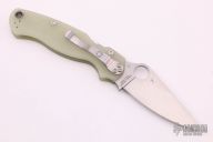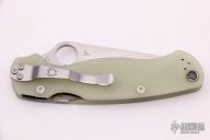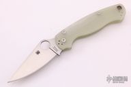 This G81GM4BKP2 Paramilitary 2 by Spyderco features a satin finished clip point blade with thumb hole, notched thumb ramp and choil. The handle is comprised of textured jade G10 scales over a stainless steel subframe and lockbar. 4 way adjustable pocket clip and lanyard tube in pommel. Includes original box and paperwork. Excellent condition.