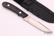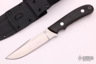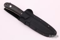 This KS-3 Pro Guides Knife  by Dozier Knives features a satin finished blade with .169" blade stock and 1.012" blade depth, full tang construction. The handle has black linen micarta scales with aluminum pins and lanyard hole. Comes with kydex sheath with belt loop. New from maker at the 2021 Blade Show.