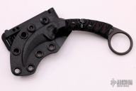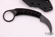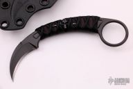 This PiKa is a Doug Marcaida design produced by Bastinelli Knives, it features a chisel ground black Cerakote hawkbill blade with swedge, .150" blade stock and .678" blade depth, full tang construction. The handle has black wrap over red cord wrap with bronze menuki. Comes with kydex sheath with Dots belt clip. Comes with original box.  New from Maker!