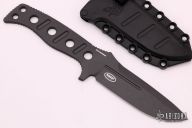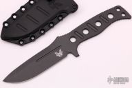 This Adamas by Benchmade is a Shane Sibert design, it features a black blade with a false top edge, notched thumbrest, .171" blade stock and 1.289" blade depth, full skeletonized tang. Comes with a molded plastic sheath, molle clips, paracord, original box and papers. Excellent condition.