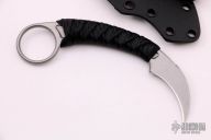 This PiKa is a Doug Marcaida design produced by Bastinelli Knives, it features a chisel ground stonewashed hawkbill blade with notched thumbrest and swedge, .150" blade stock and .678" blade depth, full tang construction. The handle has black wrap. Comes with kydex sheath with belt clip.   New from maker.