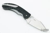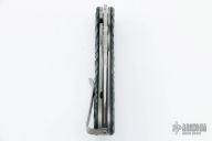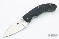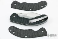 This Perrin PPT from Spyderco has a satin finished CPM S30V stainless steel drop point blade with thumb hole and notched thumb rest. Handle is black G10 over bead blasted stainless steel liners and backspacer. Bead blast stainless steel tip up clip. Comes with a set of sculpted Carbon Fiber scales. Excellent condition. Includes original box and papers.