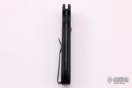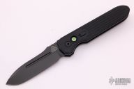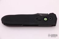 This Invictus by Pro-Tech is a Prometheus Design Werx design, it features a black blade with a notched thumbrest.  The handle has a black aluminum frame with a black stainless steel tip up clip, lanyard hole at the butt. Push button with green G-10 inlay and a safety.  Comes with original box and papers. New from maker at the USN GXII.