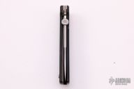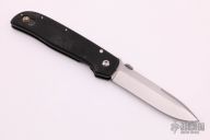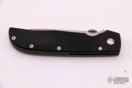 This TTF-3A by Bob Terzuola features a stonewashed blade with notched thumbrest and thumbdisc. The handle has black G-10 scales, an anodized titanium liner. Nice detent, lockup and blade seating. Has a place for a tip up clip and a screw/washer, but no clip. Has a few light scratches. otherwise, excellent condition.