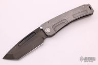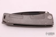 This Marauder from Medford Knife and Tool features a black PVD finished tanto blade with fullers. The handle has a stonewashed titanium frame over a stainless steel backspace, stonewashed titanium tip up clip. Includes original box and case.  Excellent Condition.