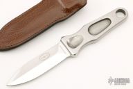 This Sting is an original A.G. Russell Sting from 1977, featuring an integral mirror polished double-edged blade and satin handle. .129" blade stock and .877" blade depth with full integral construction. Great look and feel. Includes a brown leather sheath.  Has a few very light scratches, otherwise excellent Condition.