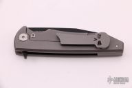The Chaves Knives Sangre Street flipper is part of the Ultramar series, a production line made by Reate to bring Ramon's exceptional custom designs to a wider audience. It comes equipped with an aggressive wharncliffe style blade that deploys effortlessly on ball bearings. An ergonomic titanium frame lock handle provides a comfortable grip and absolute blade lockup. The Sangre Street comes outfitted with a signature Chaves skull pocket clip for secure everyday carry.