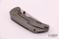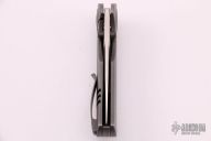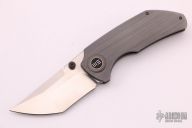 This knife features a bead blasted tanto style blade with dual thumbstuds.  The handle features a titanium frame with a matching tip up pocket clip and backspacer.  Includes original box and papers.  Has a couple light scratches, otherwise excellent condition.
