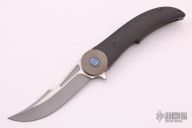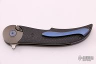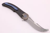 This Equilibrium by HEA designs features a satin and bead blast finished blade with flipper. The handle has an anodized titanium frame with carbon fiber covers, anodized tip up clip and floating backspacer. Nice detent, lockup and blade seating. Comes with felt pouch. Has some light scuffs/scratches, otherwise excellent condition.