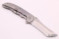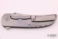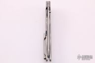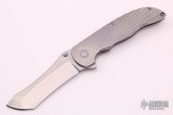 This Norseman (#4197) by John Grimsmo features a tumbled blade with a single anodized titanium thumb stud, notched thumb ramp and flipper. Anodized finished and Starburst 2.0 textured titanium frame with anodized titanium screws. Very smooth action that requires no wrist movement. Nice detent, lockup and blade seating. Rides on ceramic bearings. Knife is in excellent condition, shows no signs of use or carry. Comes with original packaging, custom hard case, Nano-Oil, tool, and COA dated November 9 2020.