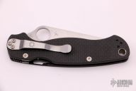 This Paramilitary 2 Linerlock Folder from Spyderco has a satin finished clip point blade with thumb hole and notched thumb rest, this knife has a laminated steel blade consisting of CPM154/S90V. Handle is textured carbon fiber with stainless steel liners and stainless steel 4-way reversible clip. Comes with original box. Excellent condition. From what i can tell, only 300 of these were made.