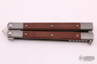 The Mid-Tech Penasong from Enrique Pena is a more accessible version of his custom Penasong, but doesn't sacrifice any of the quality. Each knife is assembled and hand ground by Enrique. The body screws, latch, and spacers are made out of titanium, while the pivot pins are made from stainless steel. Ceramic ball-bearings allow the knife to flip with ease and run on stainless washers to prevent wear on the titanium frame. Upgrade your balisong game and pick up one of these fine Mid-Tech Penasong knives.