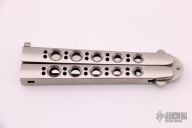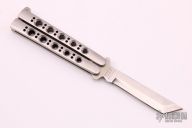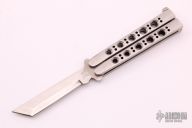 This Bali-Song Model 69 has a satin finished stainless steel tanto blade. Handle is satin finished stainless steel. Latch is tight in the open and closed positions. Comes with original box, papers and sheath. Made in the late 80's. Excellent condition.