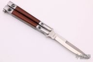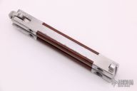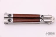 This Manilla Folder Balisong from Taylor/Seto features a satin finished spear point blade with false top edge. The handle is comprised of integral aluminum construction with rosewood inlays. T latch on pommel. Includes the original box. Has some scratches, otherwise excellent condition.