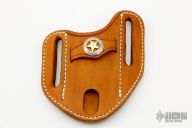 Leather Belt Sheath set up for a forward canted carry by A&M Leather. Silver and gold concho. New from maker.
