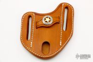 Leather Belt Sheath set up for a forward canted carry by A&M Leather. Silver and gold concho. New from maker.