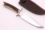 The Esculta ideally suited for outdoor and hunting use. The rugged, select stag handle scales provide a distinctly reliable grip and outstanding handling characteristics. Also features a stainless steel guard and Böhler N695 steel blade with stonewash finish. Includes a premium leather sheath.