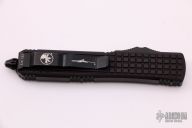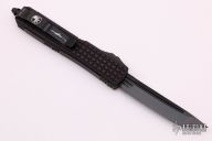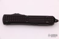 The Ultratech is a precision-made, out-the-front tactical knife. Has a fluted DLC standard tanto blade. Black frag pattern aluminum handle with black hardware, tip down stainless steel clip and nickel boron internals. Comes with original box and papers. Excellent condition.