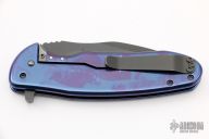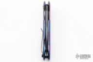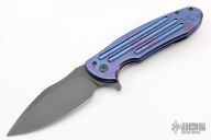This Fortis by Ferrum Forge features a dark gray coated drop point blade with swedge, notched thumbrest and flipper. The handle is comprised of a milled and anodized titanium frame, dark gray coated barrel spacers and titanium pocket clip. Excellent condition. Comes with zippered case and dogtag.