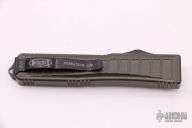 This Ultratech II features a green single edged blade. The handle has a green aluminum frame with a "stair step" design for better grip. Stainless steel tip down clip marked 12/2004 with s/n 0828. Pretty rare piece. Previously owned. Includes original sheath. Excellent condition.
