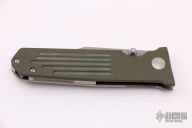 The STS-G10 folder design is a modern, technical, framelock folder featuring a distinct clip point blade inspired by the classic Loveless chute knife. This PDW edition features a premium Böhler M390 blade, OD Green G10 presentation handle side, billet titanium framelock handle side, lock bar limiter, and ceramic bearings in the pivot for a smooth action.