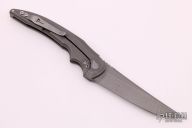With a narrowing point in a traditional Japanese-style tanto, this blade is the epitome of stabby! With the widest point of the profile just shy of an inch, and narrowing down to an atom at the tip, this blade begs to poke things! Much more gentlemanly than our traditional fare, but still robust and rugged like you expect from Jake Hoback Knives. Caged bearings make this blade fly open with a crack and close with gentle smoothness.