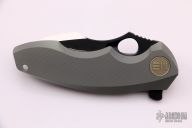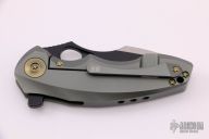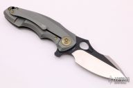 This 605I Flipper by WE Knife Company features a two-tone finished spear point blade with false top edge, notched thumbrest, thumbhole and flipper. The handle has a milled titanium frame with anodized tip up clip and hardware. Nice detent, lockup and blade seating. Comes with zippered case and papers. Excellent condition.