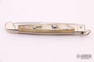 Angelo Campolin Sr. was born in 1923 in Maniago, Italy. He worked on perfecting his knife making skills before WWII and at this time made his first switchblades. After the war, in 1947 he started his company and made 30 stilettos with the marking “Angelo Campolin”. In the 1970’s Angelo’s son Gianni started to work in the company and they were specializing in folding hunting knives and also manual folding stilettos for the Robert Klaas company in Solingen Germany with their Kissing Cranes mark. In 2002 American switchblade collectors Dan Fuller, Brad West, and Tim Zinser were visiting Maniago and enjoying a few glasses of wine in a bar with Angelo Jr. and Gianni. The discussion was about a new name for some knife projects they wanted to pursue. It was Brad West that suggested the tang stamp should be AGA, for Angelo, Gianni, Angelo, thus representing three generations in the knife making business. The Campolins liked it and it stuck. In the beginning it was just a few items, but grew to the point where now there are 12 models and different scale options. The goal has been to offer quality switchblades using the old methods and traditions. Being a collector himself, Angelo Jr. knows what others like. The company headquarters has moved to Austria with production still in the original Maniago shop, as well as the others in Maniago that produce the knives for A.G.A. Campolin.