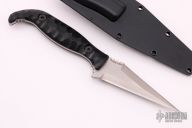 Double edged AEBL steel, heat treated to 59-60 HRc, with a tumbled finish