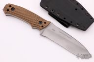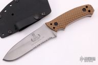 This Carson/Strider Collaboration is #000 of a limited run done for the EOD Memorial Est. 1970. The blade is grey with partially serrated edge, .254" blade stock and 1.624" blade depth, full tang construction with gunner grip tan G-10 scales. Comes with a kydex sheath. Excellent condition.