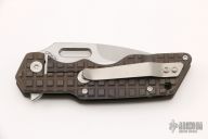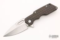 This Mark 1 Flipper by A2D Mercantile features a satin finished blade with thumbhole and flipper. The handle has an anodized and frag pattern milled titanium frame, titanium tip up clip. Nice detent, lockup and blade seating. Excellent condition.