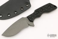 This Mark 1 Fixed Blade by A2D Mercantile features a tungsten cerakoted blade with .159" blade stock and 1.182" blade depth, full tang construction. The handle has black G-10 scales. Comes with a kydex sheath. Excellent condition.