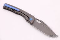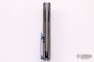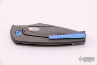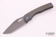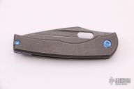This BBM V2 by Nick Chuprin and Robert Carter features a tumbled blade with fullers, thumbhole and milled bevels. The handle has a stonewashed titanium frame, anodized titanium pivot, screws, backspacer and tip up clip with hidden screws. Rides on bearings, nice detent, lockup and blade seating. Comes with a zippered case. Excellent condition.