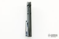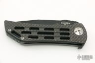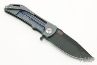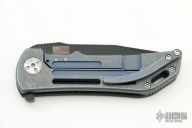This Dominator by Darrel Ralph features a black tumble finished drop point blade with swedge, notched thumbrest and flipper. The handle has a carbon fiber "A" side scale and titanium lockside with matching tip up clip and titanium backspacer. Lanyard hole in pommel. Excellent Condition. Comes with zippered case and COA dated 02/19.
