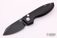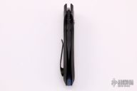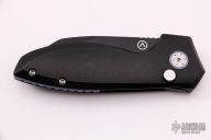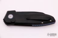 The Slim Pickins is Alliance Designs' first in-house design, which offers sleek yet dramatic lines and our meticulously precise fit and finish. The sheepsfoot style blade features a black PVD coated blade with a notched thumb rest and flipper. The handle features PVD coated titanium frame with a matching tip up pocket clip and backspacer. Includes the original box and papers.  New from Maker!