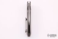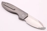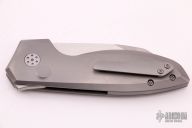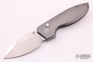 The Slim Pickins is Alliance Designs' first in-house design, which offers sleek yet dramatic lines and our meticulously precise fit and finish. The sheepsfoot style blade features a satin finish with a notched thumb rest and flipper. The handle features a bead blasted titanium frame with a matching tip up pocket clip and backspacer. Includes a padded zippered case. New from maker.