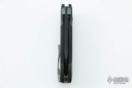 Our goal was to lighten this beast while keeping it amazingly strong, so we 3D-machined it inside and out. This is our first button lock flipper! (And what a challenge it was to pull off!) And finally, we added a little “bling” by anodizing the thumb studs, pocket clip, and backspacer either Bronze or Blue – very subtle and muted colors that set off the look of the knife in a way we haven’t tried before!