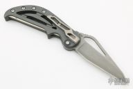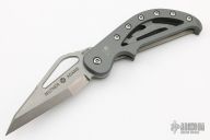This MA-1/A by Miltner Adams features a chisel ground clip point blade with swedge and thumb hole. The handle is comprised of a gray anodized aluminum frame with inlaid sharpening stone that sharpens the blade every time it is closed. Steel deep carry clip is positioned for tip down carry. Includes padded velcro case. Excellent condition.