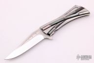 A native of Japan, Koji Hara was born in 1949 in Imari City, and is one of the most traveled of Japanese knifemakers, attending shows throughout his home country as well as over the United States and Europe. When he began making his first knives in 1988, they were his versions of Bob Loveless designs. Three years later he held a one-man knife show in Seki City, Japan, heart of the production cutlery industry. It was at this point in his career that he realized he had to make and sell knives of his own concept and design if he was going to succeed. In 1994 Koji had become a Probationary Member of the American Knifemakers Guild, and in 1997 a Voting Member. During this period he was participating in at least five American shows per year, and would soon be attending shows in Europe. Annually, this prolific maker attends two knife shows in Japan, in addition to having maybe two one-man shows, usually in smaller communities, where collectors don't visit the larger cities. He feels these small shows enable more and more people to become familiar with custom knives. He has received awards for his folders such as "Best in Show" and "Most Innovative" in several international knife shows. Koji primarily uses a powdered stainless steel known as Cowry-Y, made by Daido Steel in Japan, for his blades. It holds an excellent cutting edge and polishes to a high mirror finish. Although one of the drawbacks of powdered steel is its weakness towards lateral impact, this can be corrected through proper heat-treating. Koji also makes knives featuring ATS-34, D-2, 440C and other steel blades, based on customer preference. His preferred method of making blades is via stock removal. A folder specialist, he often carves the handle material into a terraced landscape to feature his classic "Air-Step" design.