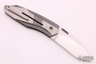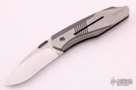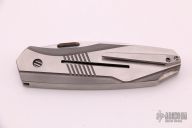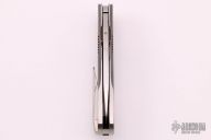 This Potenza 3.0 by GTC features a hand rub satin finished blade with a checkered copper thumbdisc that runs through the blade and can be accessed by both sides. The handle has a two-tone titanium frame and tip up clip, satin finished titanium lockbar with checkered release. Rides on bearings, nice lockup, action and blade seating. Comes with a zippered case with COA dated 2019. Excellent condition. If you notice, the only screws visible are the pivot and the clip screws, very nice engineering!