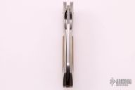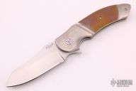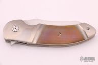 This N° 185 linerlock flipper by Sergio Consoli features a hand-rubbed satin finish blade with notched flipper. The handle has satin finished and partially anodized titanium scales, Inox steel liners, and an anodized titanium backspacer. Sergio's ball bearing system gives the knife an effortless flip that requires no wrist action.  Perfect lockup, detent and blade seating. Outstanding work. Knife is in excellent condition and shows no signs of use, although it does have a few very fine scratches/scuffs. Comes with zippered case.