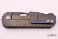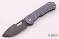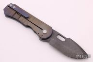 This GF2 by DSK Tactical Knives features a drop point Herring Bone Damascus blade with thumbhole. The handle has a sculpted and anodized titanium frame with tip up clip. Nice detent, lockup and blade seating. Comes with a zippered case and COA. Excellent condition.