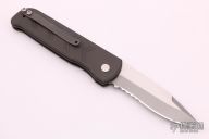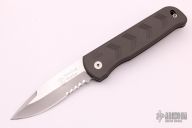 This Voodoo Works Scale Release Automatic by Rob Dalton features a bead blasted, drop point partially serrated blade. The handle has gray anodized aluminum with a titanium tip up clip. Has a few light handling marks on frame but overall excellent condition.