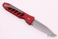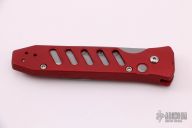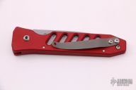 This side-opening automatic by Rob Dalton has a bead blast blade and anodized aluminum frame. Bead blast stainless steel clip, left or right reversible. Strong and fast coil-spring opening. Very nice work. Excellent condition. Very light carry marks on the handle, otherwise excellent condition.